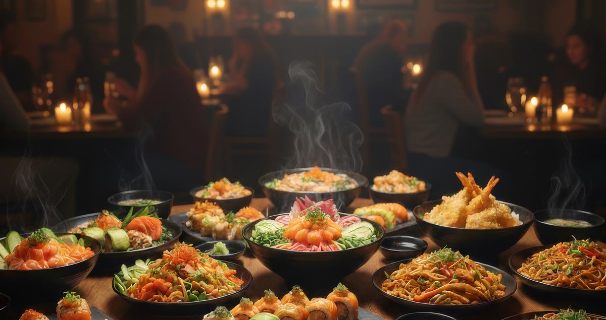 Asiatisk lunchbuffé, wok, sushi och vegetariskt. Även catering.